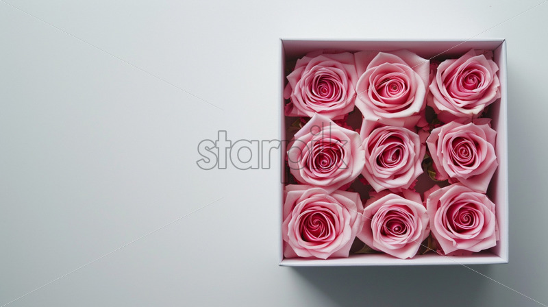 Valentine’s Day postcard with gift heart shape, roses and candles on white background