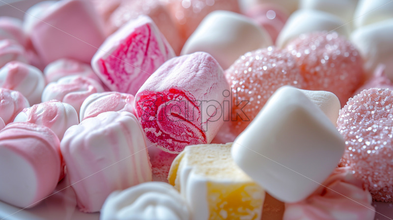 Variety of marshmallow sweets, arranged on a plate