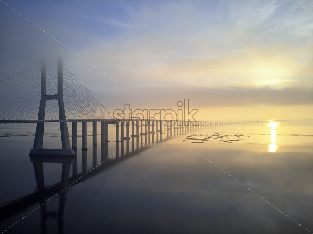 Vasco da gama bridge in Lisbon at sunset, Portugal