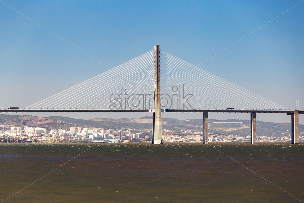 Vasco da Gama bridge crossing the Tagus river in Lisbon, Portugal