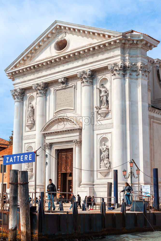 VENICE, ITALY – APRIL 9, 2023: People at the entrance of Church of Santa Maria del Rosario