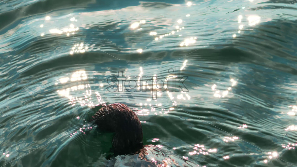 A cormorant swims and dives into the clear blue sea near the coast Royalty Free Stock Video Footage