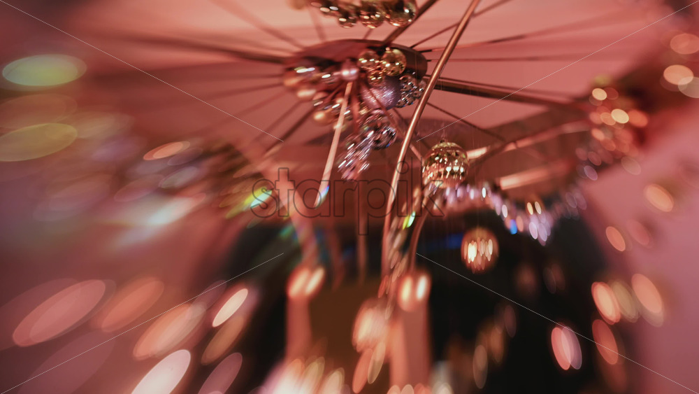 Abstract shot of warm toned Christmas lights and hanging ornaments, blurred creating a festive bokeh effect Royalty Free Stock Video Footage