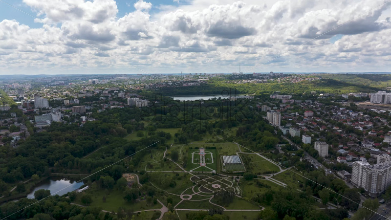 VIDEO Aerial drone timelapse view of Dendrarium park in Chisinau city. Moldova Royalty Free Stock Video Footage