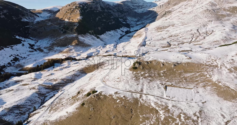 Home » Shop » 1 Video » Video Aerial drone view of a little snow on the Bucegi Mountains, near Brasov, Romania