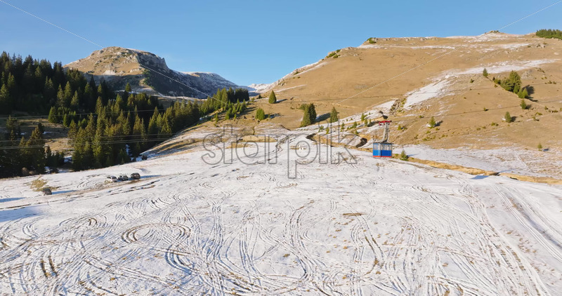 Video Aerial drone view of a little snow on the Bucegi Mountains, near Brasov, Romania Royalty Free Stock Video Footage