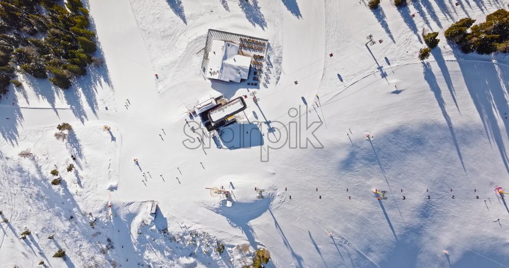 video Aerial drone view of a ski resort in Col dei Baldi, Alleghe, in the Dolomites, Italy in daylight Royalty Free Stock Video Footage
