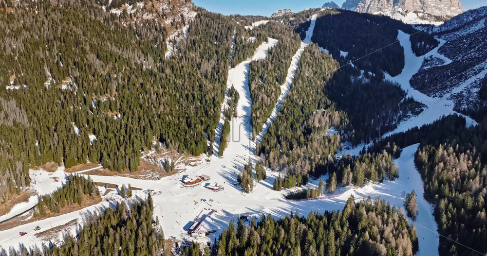 Home » Shop » 1 Video » Video Aerial drone view of a ski resort in Piani di Pezze, Alleghe, Province of Belluno, in the Dolomites, Italy in daylight
