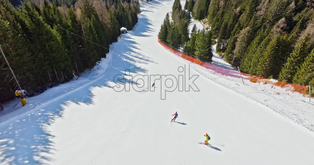 Alleghe, Italy – January 12, 2025: Aerial drone view of a ski resort in Col dei Baldi, Alleghe, in the Dolomites, Italy in daylight Royalty Free Stock Video Footage