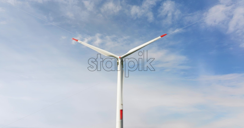 VIDEO Aerial drone view of a wind turbine in a field on a cloudy day Royalty Free Stock Video Footage