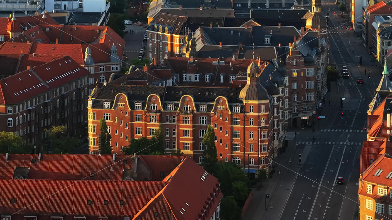 VIDEO Aerial drone view of Amagerbro area in the northern part of the island Amager in Copenhagen, Denmark at sunset Royalty Free Stock Video Footage