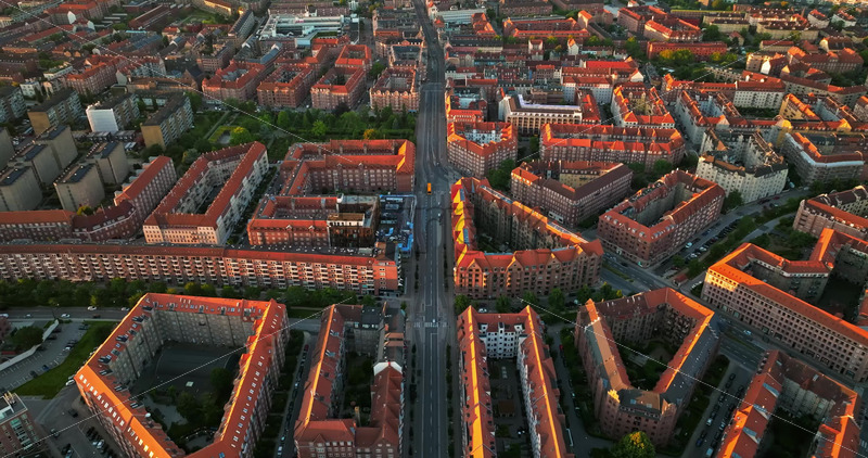 Home » Shop » 1 Video » Video Aerial drone view of Amagerbro area in the northern part of the island Amager in Copenhagen, Denmark at sunset