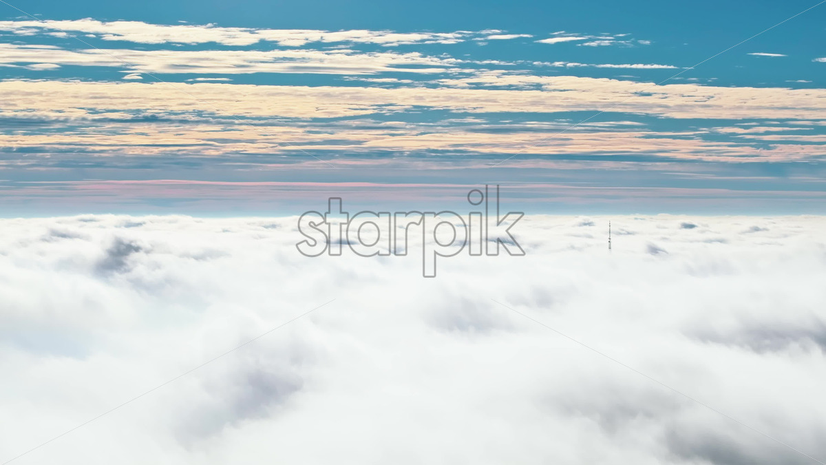 Video Aerial drone view of an utility pole in the clouds Royalty Free Stock Video Footage