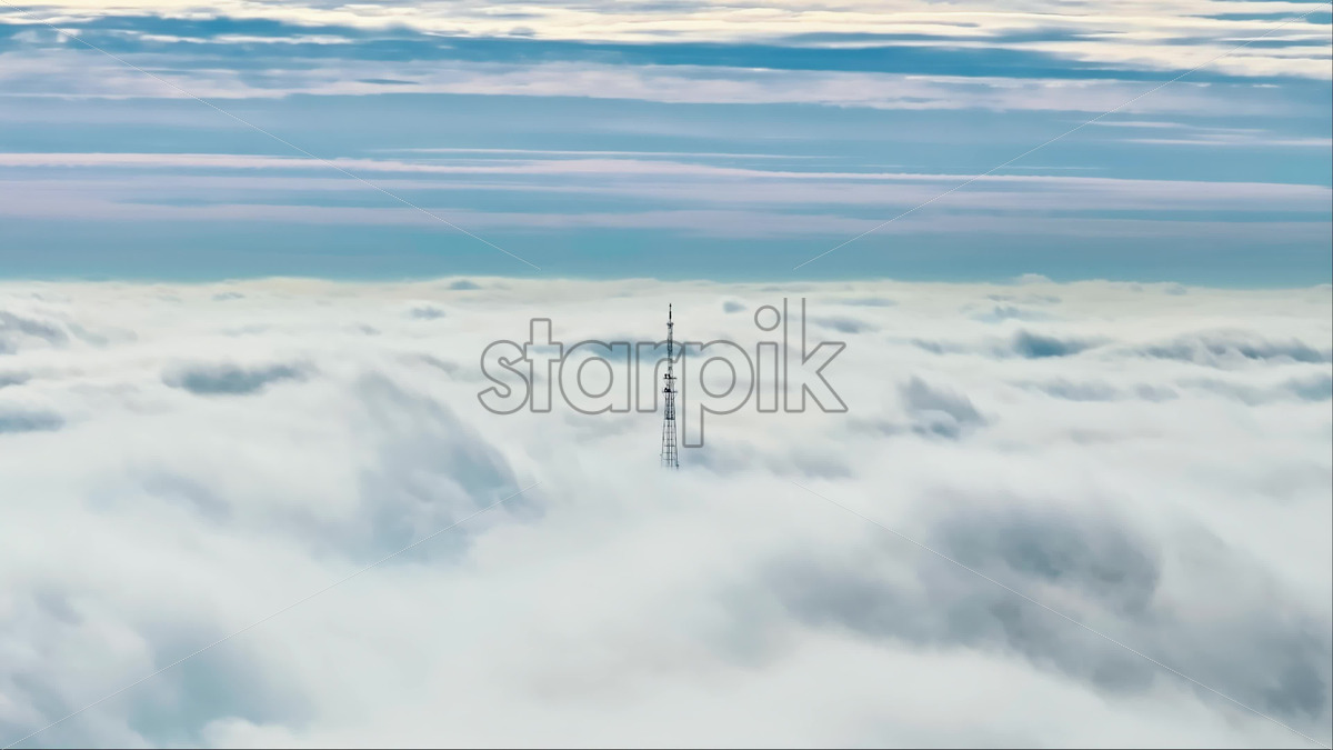 Video Aerial drone view of an utility pole in the clouds Royalty Free Stock Video Footage