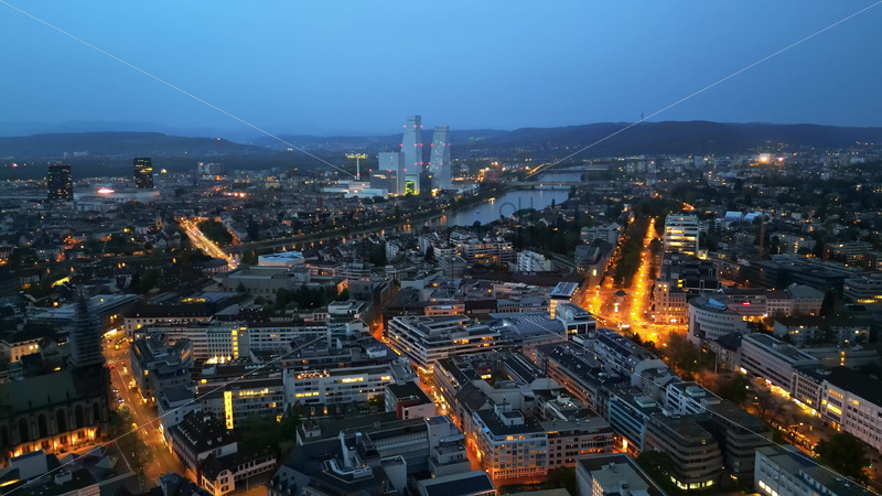 VIDEO Aerial, drone view of Basel, Switzerland in the evening Royalty Free Stock Video Footage