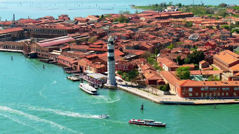 VIDEO Aerial drone view of boats moving near Murano, Venice, Italy Royalty Free Stock Video Footage