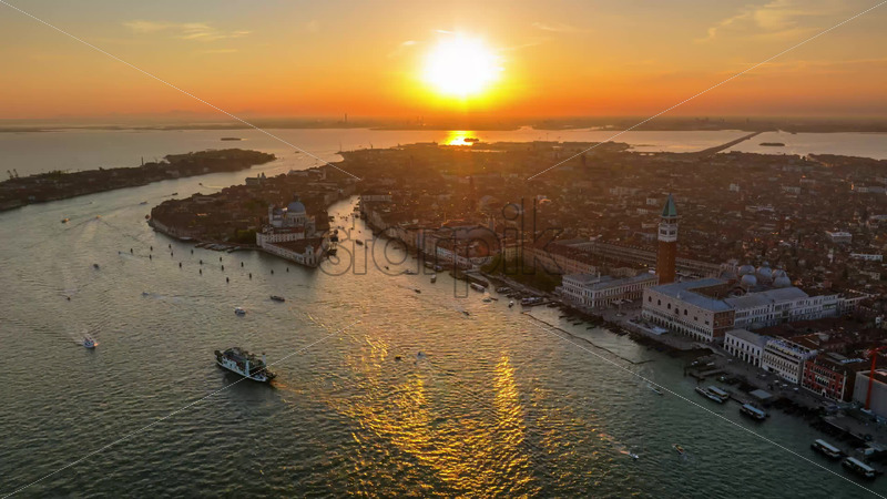 VIDEO Aerial drone view of Venice City, Italy at sunset Royalty Free Stock Video Footage