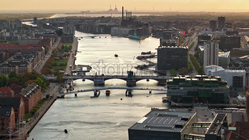 Video Aerial drone view of Borsen historical place in Copenhagen, Denmark Royalty Free Stock Video Footage