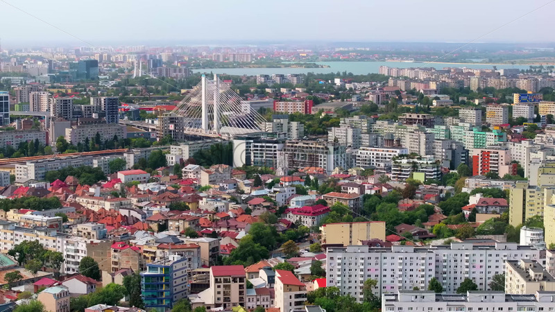 VIDEO Aerial drone view of buildings around the Basarab Overpass bridge in Bucharest, Romania Royalty Free Stock Video Footage