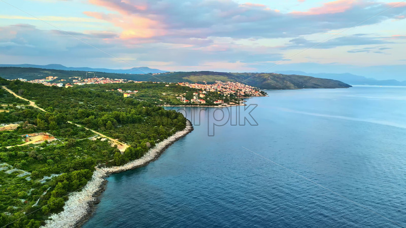 VIDEO Aerial, drone view of buildings on the shore of the Adriatic sea in Croatia Royalty Free Stock Video Footage