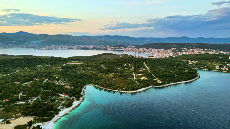 VIDEO Aerial, drone view of buildings on the shore of the Adriatic sea in Croatia Royalty Free Stock Video Footage