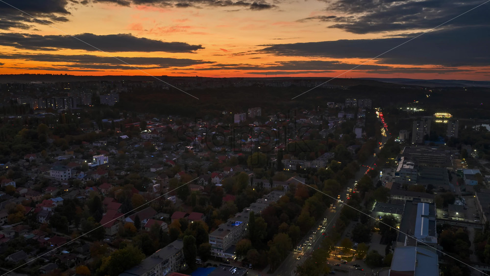Aerial drone view of cars moving in traffic on the streets of Chisinau, Moldova in the evening time lapse Royalty Free Stock Video Footage