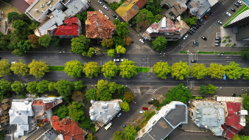 VIDEO Aerial drone view of cars moving in traffic through the city Bucharest, Romania Royalty Free Stock Video Footage
