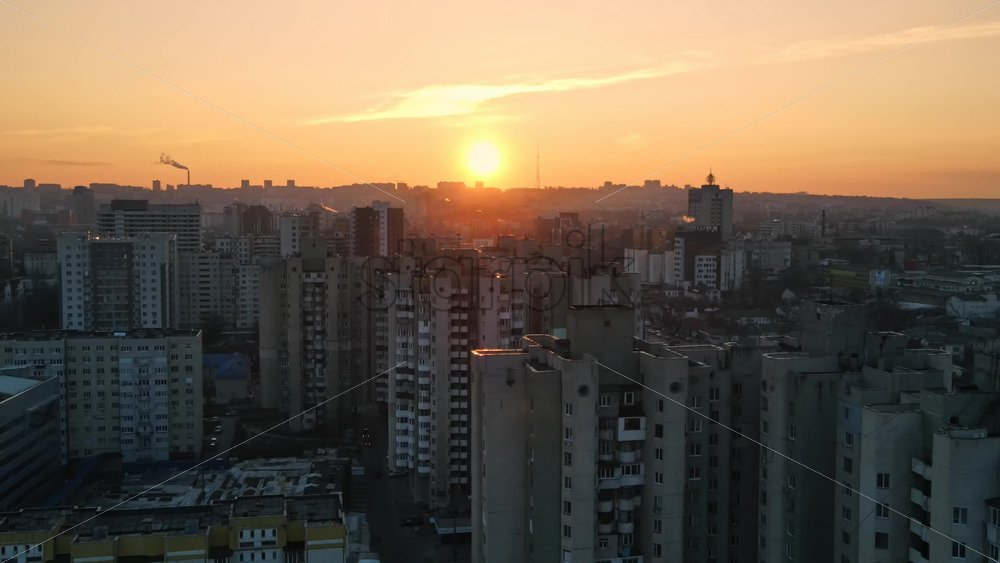 Aerial drone view of Chisinau at sunset. Multiple residential buildings. Bare trees, winter Royalty Free Stock Video Footage Royalty Free Stock Video Footage