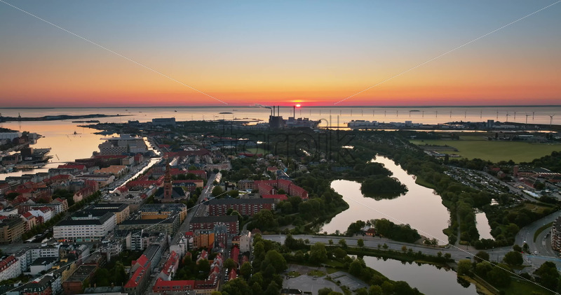 VIDEO – Aerial drone view of Amagerbro area in the northern part of the island Amager in Copenhagen, Denmark at sunset Royalty Free Stock Video Footage