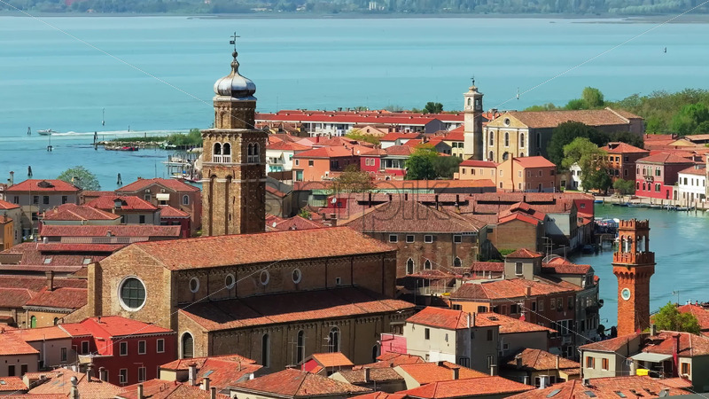 VIDEO Aerial drone view of Church of Saint Peter Martyr in Venice, Italy Royalty Free Stock Video Footage