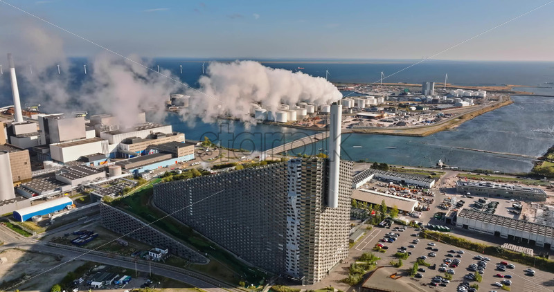 Video Aerial drone view of CopenHill artificial ski slope on the roof of an energy plant Royalty Free Stock Video Footage