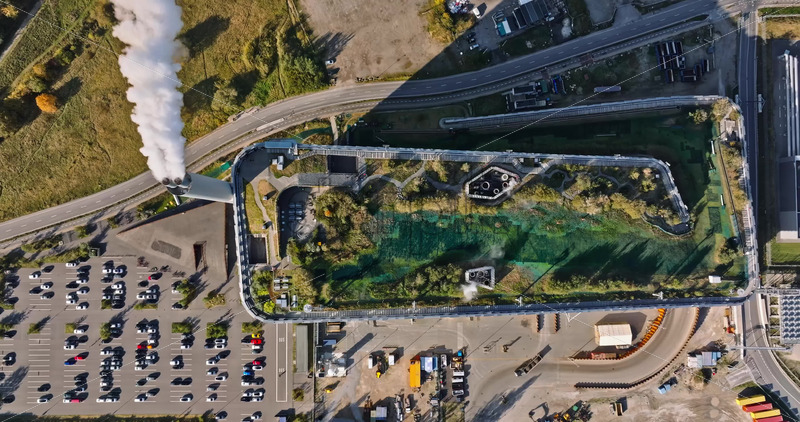 Video Aerial drone view of CopenHill artificial ski slope on the roof of an energy plant Royalty Free Stock Video Footage