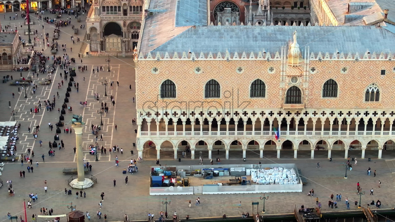 VIDEO Aerial drone view of Doge’s Palace in St. Mark’s Square, near a harbour in Venice City, Italy on a sunny day Royalty Free Stock Video Footage