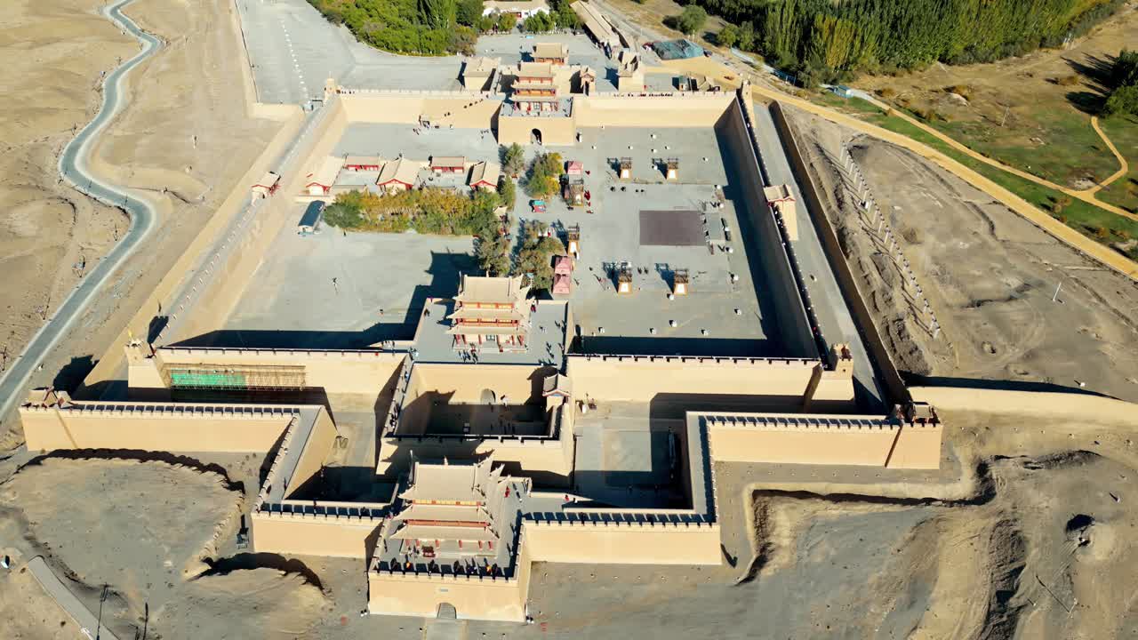 Aerial drone view of Jiayuguan Fort, the westernmost fortress of the Great Wall of China, located in Jiayuguan City, Gansu Province Royalty Free Stock Video Footage