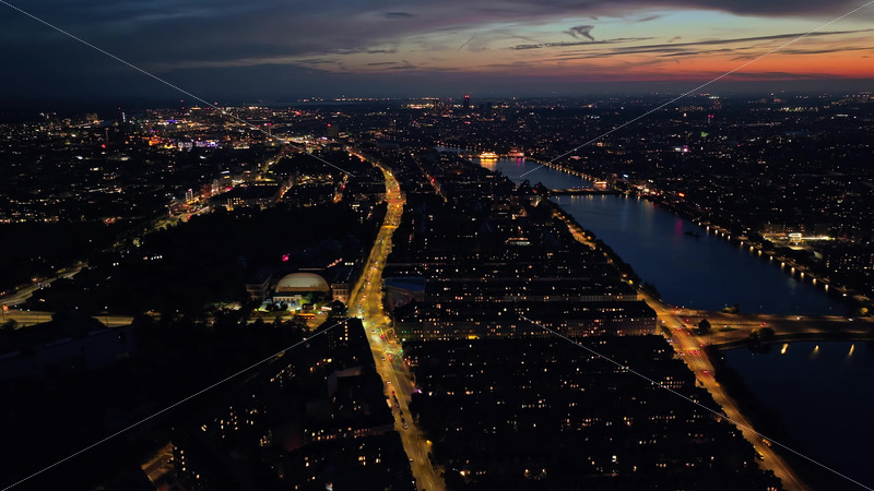 Video Aerial drone view of the Nyhavn waterfront, canal and entertainment district in Copenhagen, Denmark in the evening Royalty Free Stock Video Footage