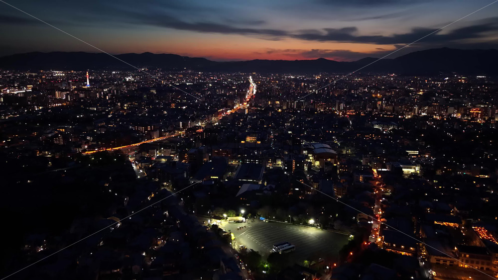 video Aerial drone view of Kyoto, Japan in the evening Royalty Free Stock Video Footage