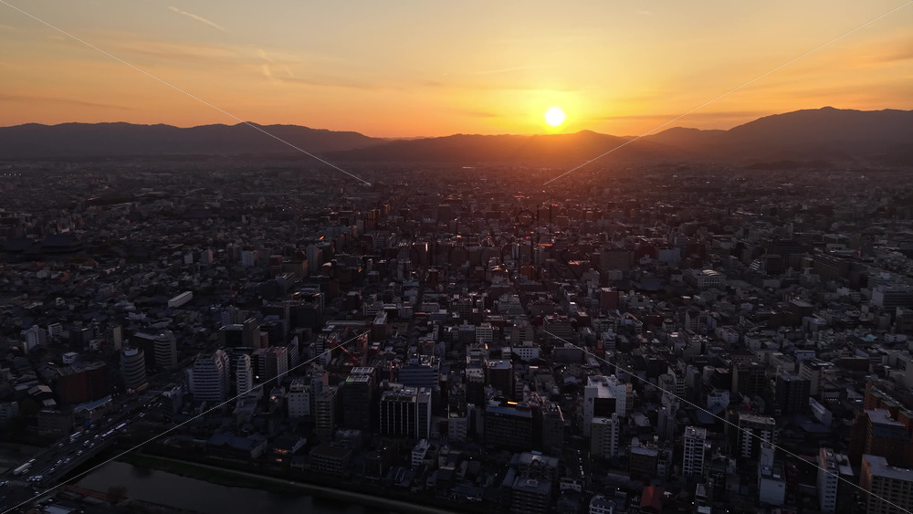 video Aerial drone view of Kyoto, Japan at sunset Royalty Free Stock Video Footage