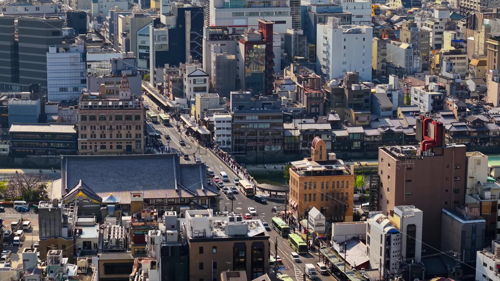 video Aerial drone view of the Hanamikoji Street in Kyoto, Japan in daylight Royalty Free Stock Video Footage