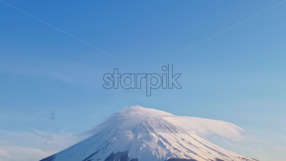 video Aerial drone view of Mount Fuji with snow at the top and clouds moving around at sunset Royalty Free Stock Video Footage