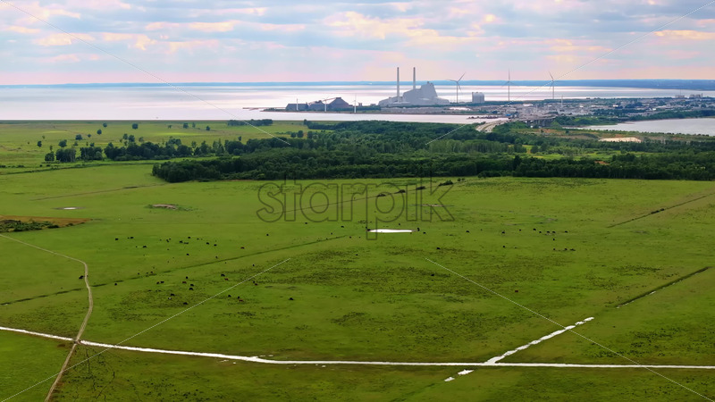 Aerial drone view of a village. View of multiple residential buildings, country roads, bare trees. City on the background. Sunny weather. Moldova Royalty Free Stock Video Footage Royalty Free Stock Video Footage