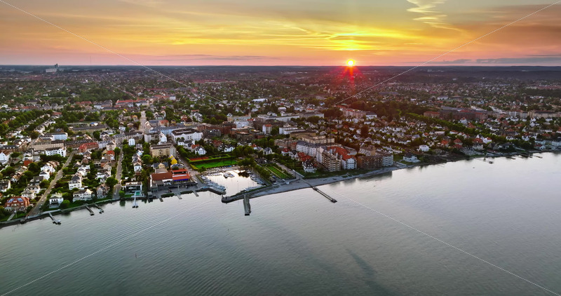 Home » Shop » 1 Video » Video Aerial drone view of Osterbo Nord, Nordhavn harbour area at the coast of the Oresund at sunset