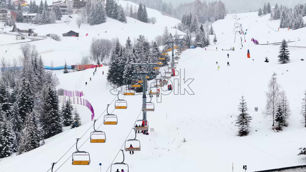 Corvara in Badia, Italy – January 11, 2025: Aerial drone view of a ski lift in Corvara, in South Tyrol, the Dolomites Royalty Free Stock Video Footage