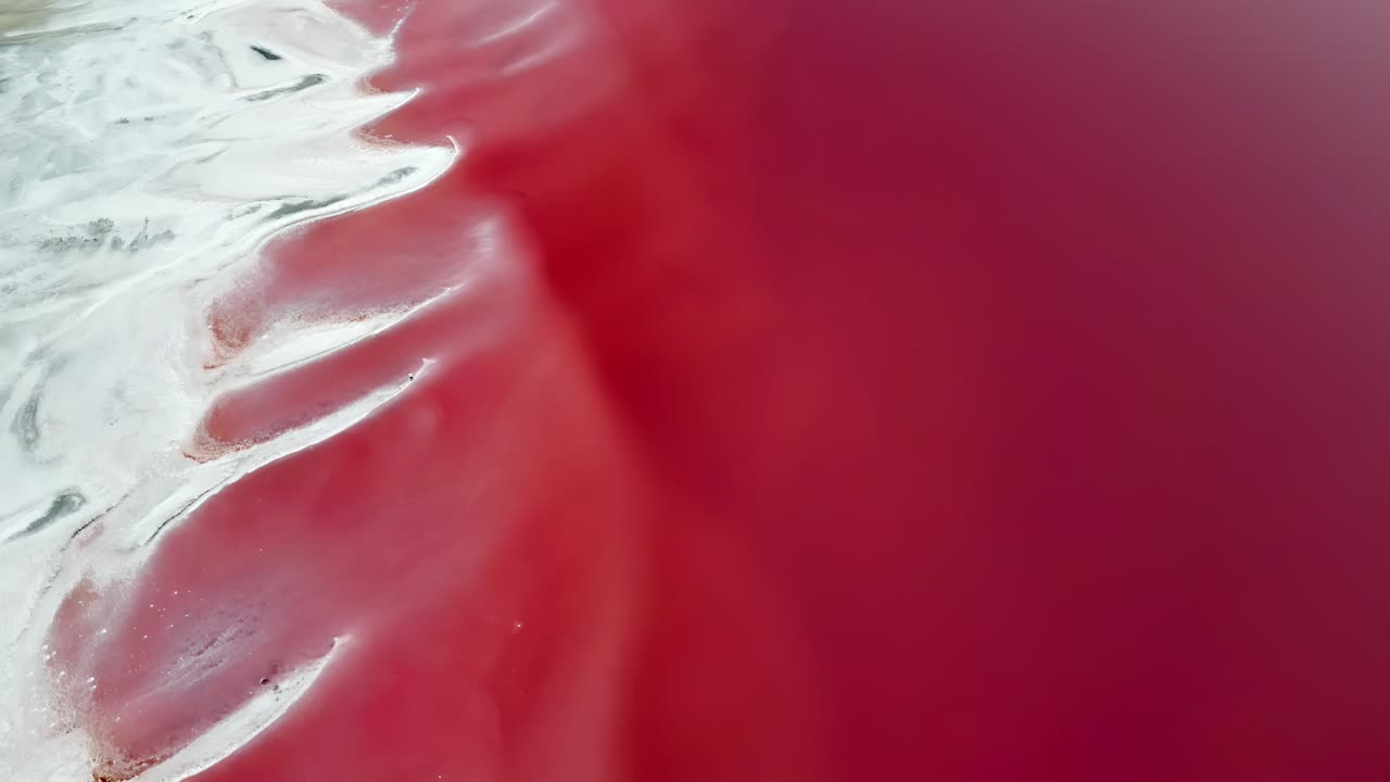 Aerial drone view a mineral lake with bright turquoise water meeting textured white sediment Royalty Free Stock Video Footage