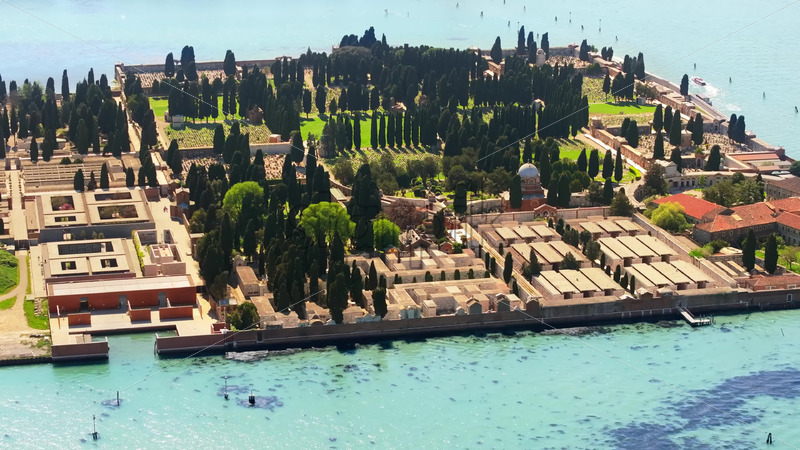 VIDEO Aerial drone view of San Michele Cemetery on the The Island of San Michele, Italy Royalty Free Stock Video Footage