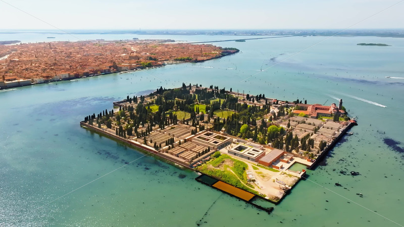 video Aerial view of San Michele Cemetery on the The Island of San Michele, Italy Royalty Free Stock Video Footage