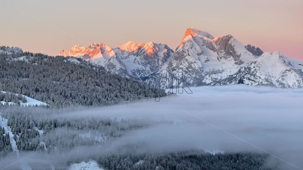 video Aerial drone view of snow on the mountains in the Dolomites, Italy at sunset Royalty Free Stock Video Footage