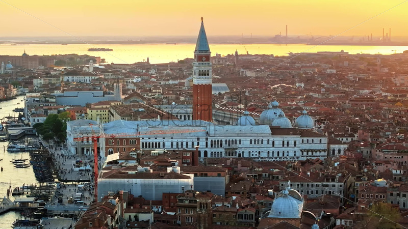 VIDEO Aerial drone view of St. Mark’s Square in Venice City, Italy, at sunset Royalty Free Stock Video Footage