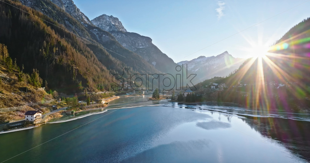 video Aerial drone view of the Alleghe village with Lake Alleghe, in the province of Belluno, Dolomites, Italy Royalty Free Stock Video Footage