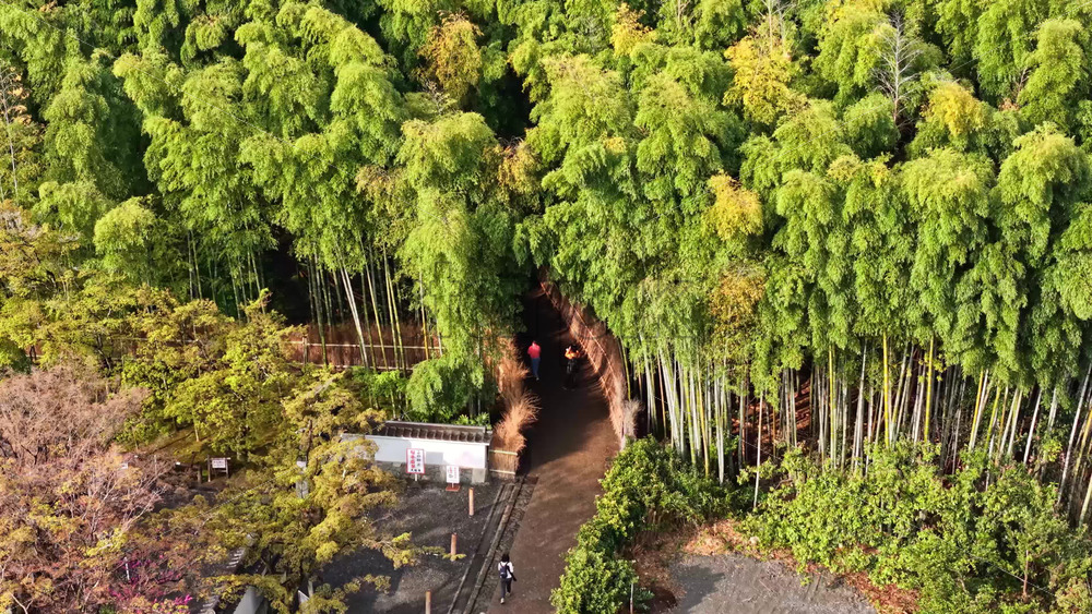 video Aerial drone view of the Arashiyama Bamboo Forest in Kyoto, Japan Royalty Free Stock Video Footage