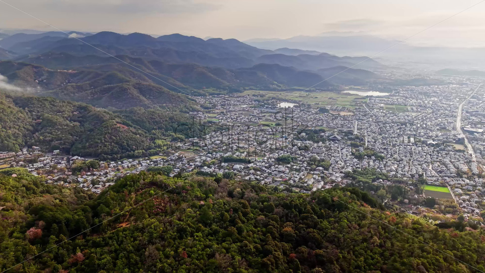 video Aerial drone view of the Arashiyama district in Kyoto Japan on a cloudy day Royalty Free Stock Video Footage